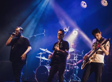 Les Gueules Rouges livrent des performances sur mesure, toujours portées par une énergie débordante. Selon l’événement, le groupe adapte son set : d’un show percutant de 45 minutes à un concert complet de 2h30, chaque prestation est pensée pour faire vibrer le public. Sur scène, les quatre musiciens sont toujours au rendez-vous : Greg assure le rythme à la batterie, Flavien envoie les riffs à la guitare, Damien groove à la basse, et Olivier fait résonner sa voix avec puissance. Un live des Gueules Rouges, c’est un moment intense, sincère et plein d’énergie.